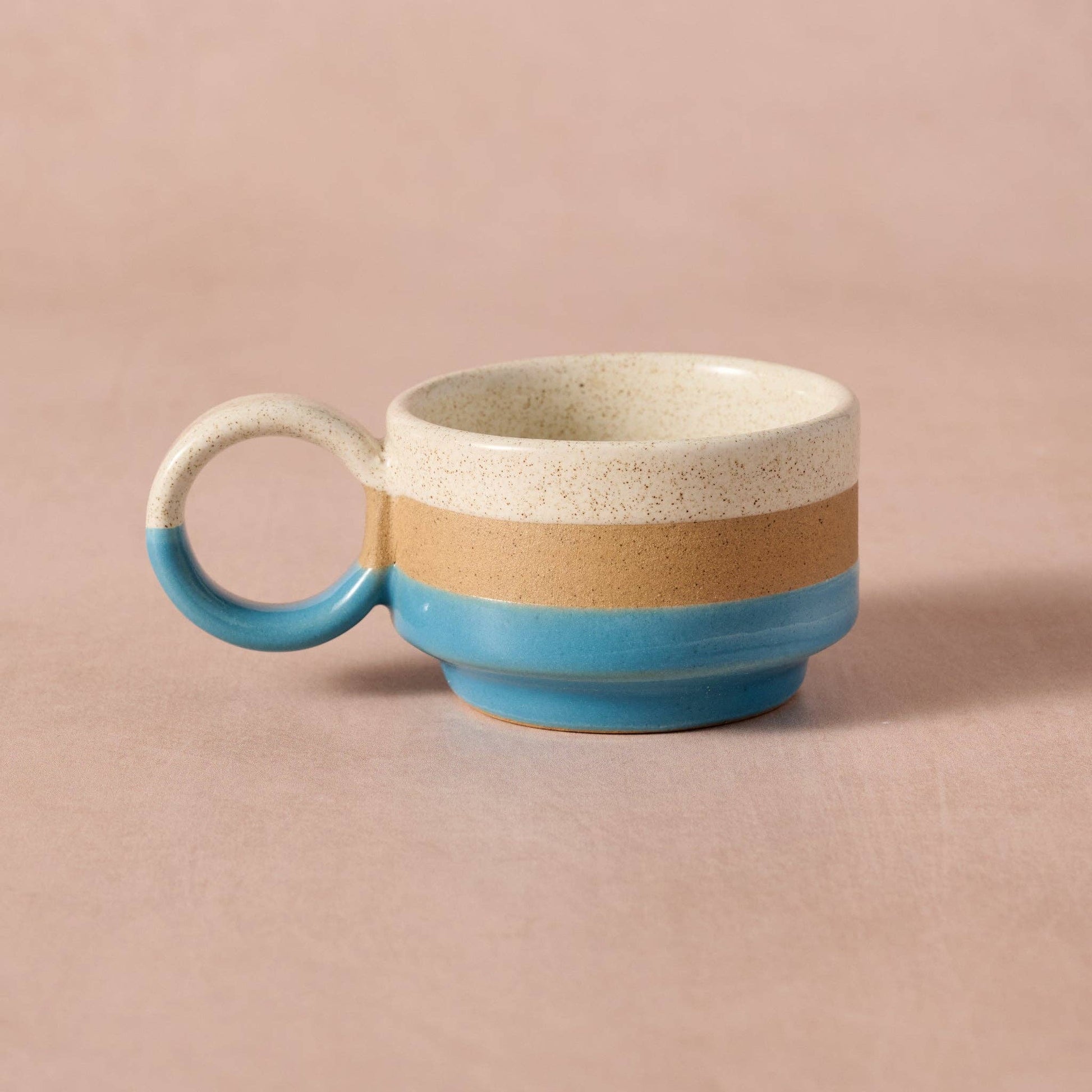 Bring a fresh, fall vibe to your morning cup of joe or coffee bar with this fantastic espresso mug! This beautifully crafted, glazed stoneware mug from Nepal comes in a striking array of autumn colors, including blue, orange, red and white highlighted by stripes of natural and speckled tan. 2-ounce capacity